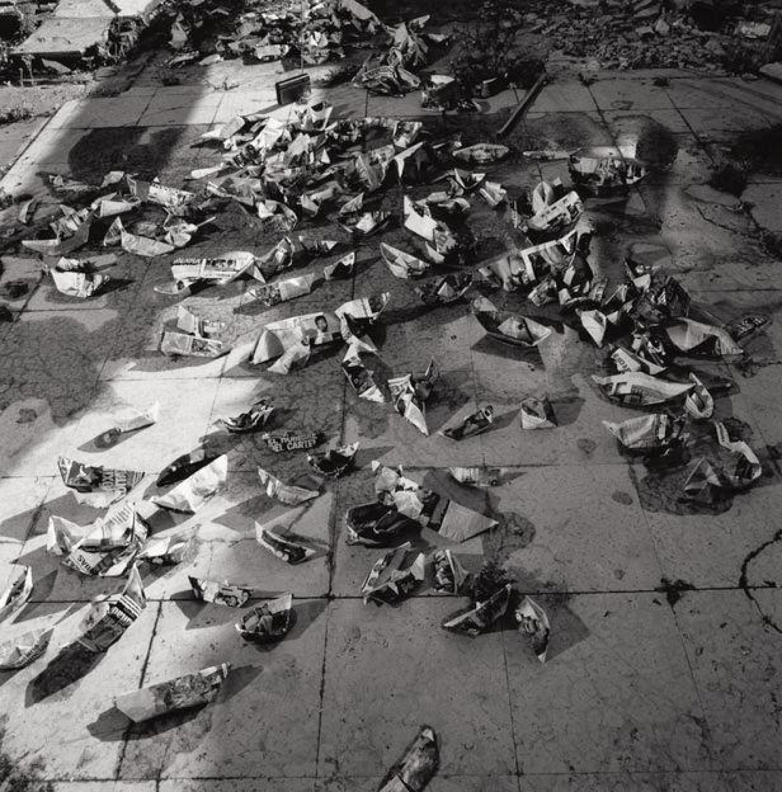 year-old boy acts as a sort of DJ of recent Colombian history, mixing images and sounds from different sources (which are used in the soundtrack of the slide installation). Some of the pictures show stranded paper boats made from Colombian newspapers and magazines, where a long history of violence may be perceived obliquely.